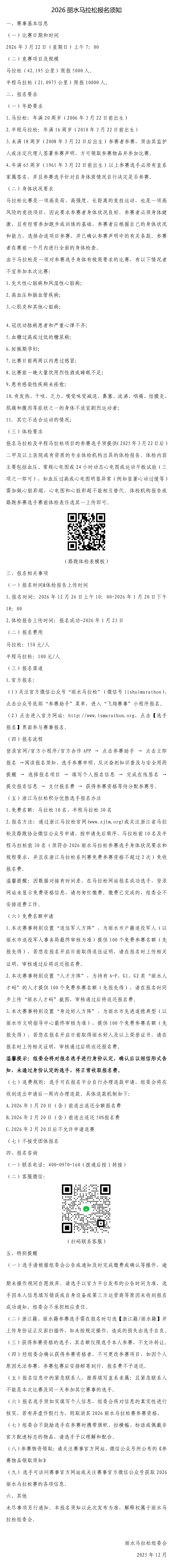 报名须知 - FerroTec 2026丽水马拉松