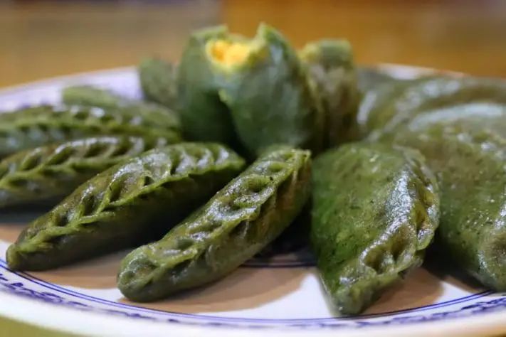身为本地极具代表性的传统小吃,清明果承载着满满当当的乡土记忆。其外皮软糯却韧劲十足,轻轻咬上一口,细腻触感便在齿间悠悠蔓延。内馅更是丰富多元,甜口的宛如细腻绵密的豆沙,甜润入心;咸口的搭配春笋、肉末等时鲜食材,层次分明,诸般滋味相互交融,每一口都饱含着乡野间质朴醇厚的气息,令人回味悠长。