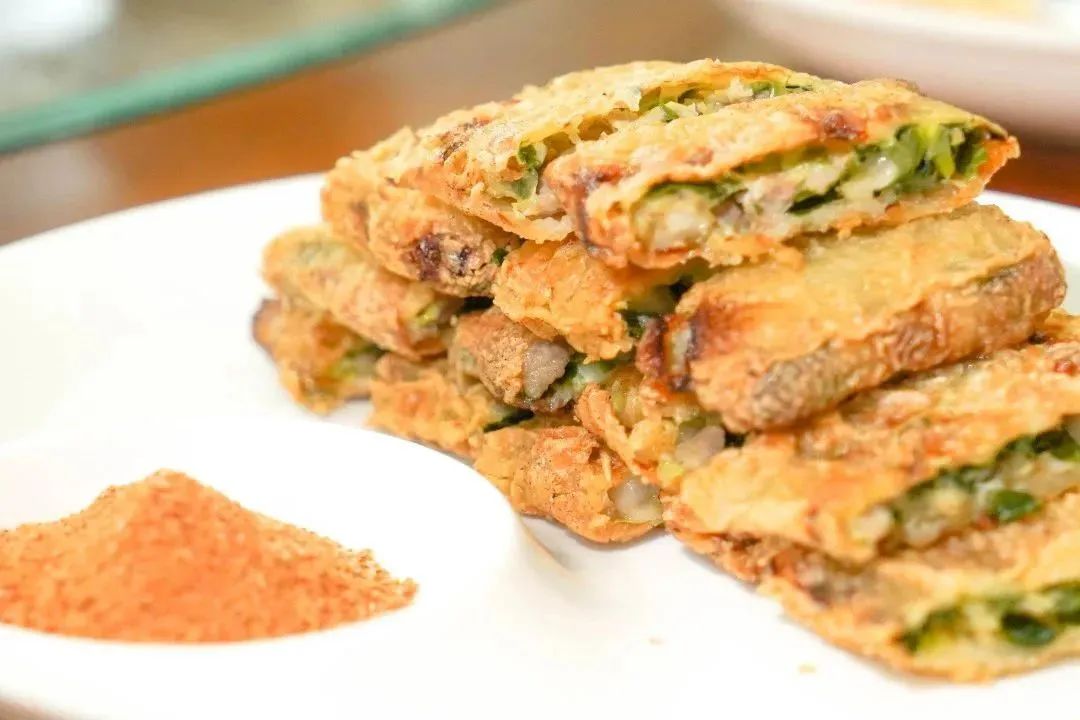 炸得金黄酥脆的皮子里,裹着满满的白萝卜丝或是香甜的南瓜丝,看着像是圆鼓鼓的中式“蛋挞”,每一口都外脆里绵,鲜香十足。松阳灯盏盘色泽金黄,外酥里嫩,用米浆倒入特制的磨具包入萝卜丝、南瓜丝、香葱等炸制而成,是松阳一道传统小吃,也是松阳在外游子的乡愁味道。