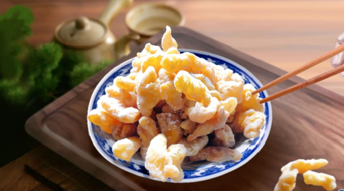 这道美食堪称莲都一绝!刚出锅的泡精肉,色泽金黄夺目,馥郁香气扑鼻而来,令人垂涎欲滴。一口咬下,外层的酥脆瞬间在齿间炸裂,“嘎吱” 作响,仿若奏响一曲欢快的美味乐章;内里肉质鲜嫩多汁,入口即化。这般截然不同的双重口感完美碰撞,不论是闲暇时光当作解馋妙品,还是搭配正餐成为点睛之笔,都能轻松将您的味蕾俘获,使您爱不释手。