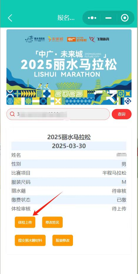 输入身份证号码,点击查询后再点击体检上传