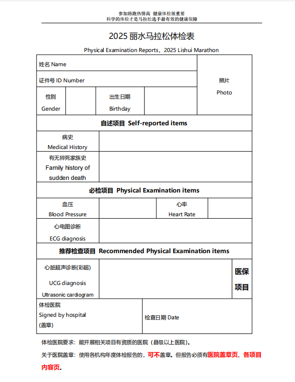 请各位跑友自行下载,体检表上传时间截至2025年1月30日17:00。